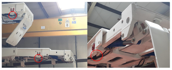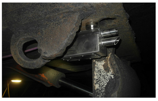 In Pniówek mine, the SSMS system was installed on a part of a longwall complex equipped with FRS-13/29-PO roof supports. Central units of SSMS-C sensors, measuring the geometry of roof support parts SSMS-I, and wireless sensors measuring the pressure in the hydraulic legs were installed on 10 roof supports (Figure 5). The SSMS-S tip to face sensors were installed on 6 canopies. Magnetic connections were used to fix them. In this case, installation of the sensor at the very end of the canopy was the only possibility. Moving the sensor further into the canopy, where it could be more protected from damage and dirt, risked damaging the sensor by face sprag.