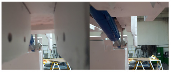 The end part of the canopy is extendable while the sensor is installed at the end of its fixed part. This makes an additional problem in terms of correct sensor readings. The sensor may misinterpret waves reflected from the transverse surfaces of components located at the end of the canopy as echo reflected from the longwall face. Figure 4 shows a view from the sensor’s installation place. There is only a small space through which the waves will propagate towards the longwall face and back after reflection from it. The mobility of the end part of the canopy makes it impossible to extend the sensor’s dead zone beyond the range of its components, which would solve the problem of interference in the form of waves reflected from those components.