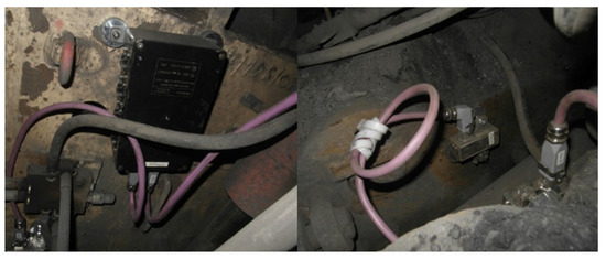 After a few days of operation, the sensors were covered with a layer of dirt. This was caused by dust, rock throw, and spraying systems of the shearer’s cutter drums during the mining process. Dirt was also deposited in the ultrasonic tubes, as can be seen in Figure 7. The layer of dirt disturbed the measurements, which was reflected in the measurements shown in the figures below. For this reason, their correct interpretation required the application of additional filtration, which is described later in this article.