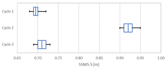 Figure 20. Box-and-whisker plot (scatter and shape of analysed data): tip-to face distance, cycle No. 1, 2 and 3.
