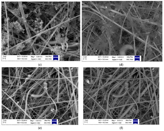 The morphology of the filters was investigated using a scanning electron microscope ULTRA PLUS (ZEISS, Oberkochen, Germany). The quantitative X-ray microanalysis of the materials was performed by the energy-dispersive spectrometry method using an X-ray spectrometer (Quantax 400, Bruker, Billerica, MA, USA).