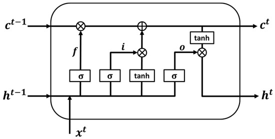 LSTM is a special kind of RNN proposed mainly to solve the gradient disappearance and gradient explosion problems in long time sequence training [22,23]. Compared with the traditional RNN, LSTM adds memory units to each neural unit in the hidden layer to control the memory information on the time sequence while each neural unit is passed through the gate structure (forgetting gate, input gate, and output gate). A typical network structure of LSTM is shown in Figure 2.