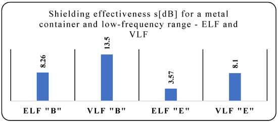 Magnetic field induction B and electric field strength E shielding effectiveness over the described ELF and VLF ranges for individual shields (shield is the metal container housing, with a sheet thickness h—1.5 mm).