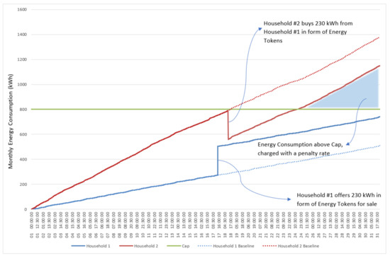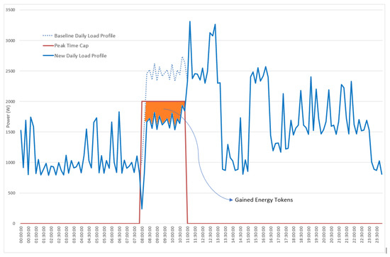 - When the power during the peak period for each household is lower than the set cap, the consumer earns energy tokens equivalent to the amount of energy reduction below the set cap value (as shown in Figure 16)