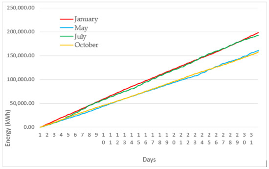 - : Total monthly electrical energy consumption reduction