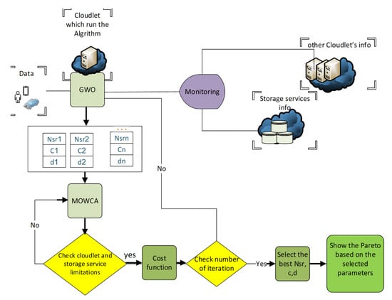 The block diagram of the proposed algorithm is shown in Figure 2. Monitoring services and making the decision based on the gathered information are done in the first cloudlet in which the data are received.