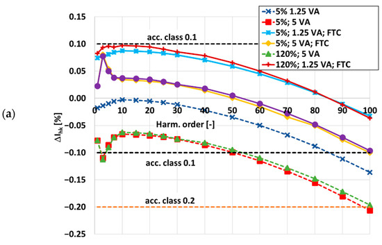 - Kaczmarek, M.; Stano, E. Proposal for extension of routine tests of the inductive current transformers to evaluation of transformation accuracy of higher harmonics. Int. J. Electr. Power Energy Syst. 2019, 113, 842–849. [Google Scholar] [CrossRef]
