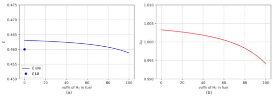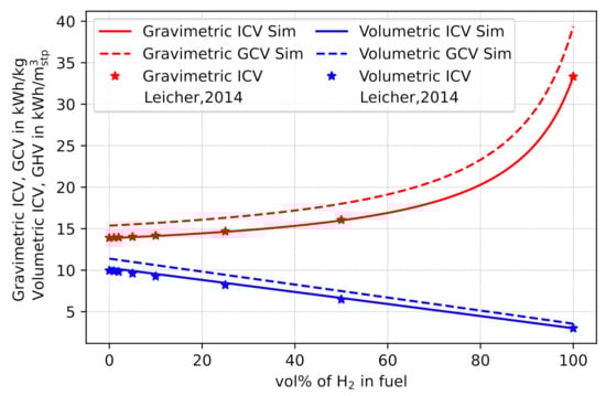 Inferior and gross calorific values of the various fuel mixtures are also calculated in Cantera. In this context, equilibrium analysis is omitted, following the established methods for calculating the calorific values according to industry standards [].