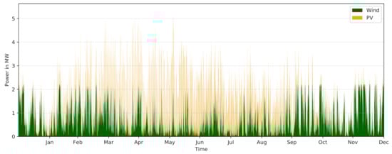 The renewable energy sources wind power (WP) and photovoltaic (PV) are modeled based on existing Modelica libraries. The required boundary conditions, such as ambient temperature, solar irradiance, and wind speed, are extracted from the test reference year (TRY) data sets of the German meteorological service (DWD) [].