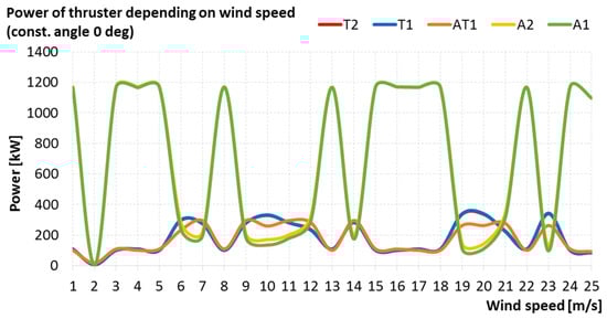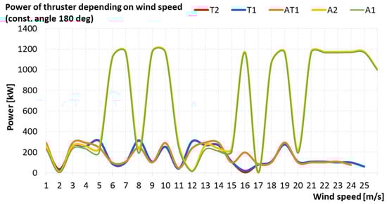 - Based on the results of the analysis from point 1, the dependencies of the strength of individual thrusters on the wind speed were determined