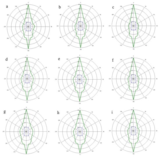 The wind force affecting a given ship is a binary function, because it depends both on the wind angle at the LPP/2 point of the ship (LPP—Length between Perpendiculars) and the wind speed. For the purposes of the analysis, two components of the wind force (one acting on the X axis, the other on the Y axis of the ship) were determined, which are expressed by the following functions [67]: