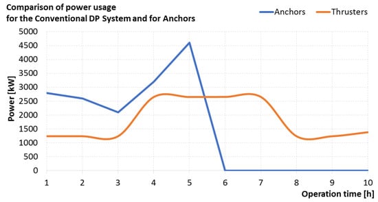 Unfortunately, there is currently a deficit related to publications on energy consumption with the use of positioning based on a set of anchors. This makes it interesting to compare this positioning method with a conventional dynamic positioning system to show the differences in both approaches to the positioning method and the resulting differences in energy consumption.