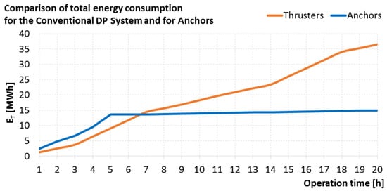 The publication presents the results of a comparative analysis for two positioning systems—the classic dynamic positioning system and the system using a set of anchors. The total energy consumption during positioning by a vessel using two different systems was analyzed. The energy consumption of a vessel with an anchor set was estimated on the basis of measurement data recorded on the actual vessel, since the crew’s individual approach to anchor drop speed, slackening or anchor line tension makes it difficult to quantify energy consumption from simulation alone.