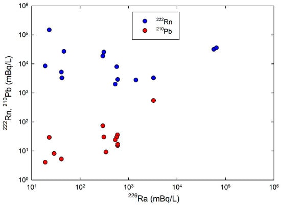 226Ra concentration vs. 222Rn and 210Pb concentrations.
