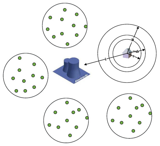 - China implements a household responsibility system in agriculture; the agribiomass holders are thousands of scattered small-scale farmers [19]. For geometrical simplicity, we assume the biomass power plant is in the central position; the biomass storage station is at the center of the agribiomass collection area with radius R [34], as shown in Figure 2. Considering the complexity of the road, tortuosity factor β is introduced to adjust transport distance, so the transportation cost from each supply point to the biomass storage station (CNY) can be calculated by the following integral:where