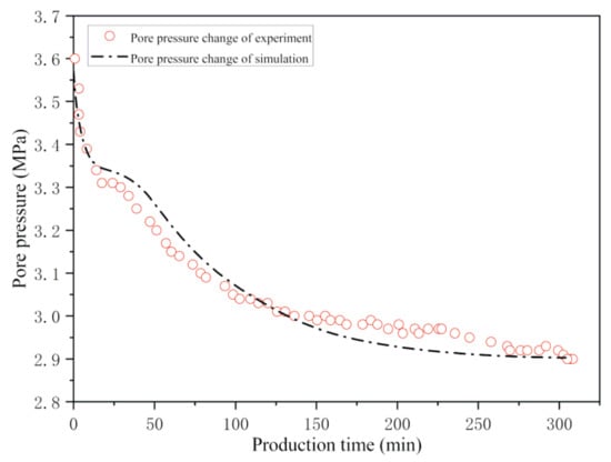 Pore pressure variation with production time compared with Masuda’s experiment.