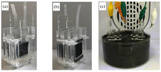 In addition, Figure 1b shows the schematic diagram of the experimental setup of the PSMFC. Since there are many electrochemically active microorganisms that already exist in the wet soil [10], no external microorganisms were needed for the operation of this PSMFC.