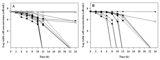 To assess the ethanol tolerance of yeast isolates, each isolate from Section 2.1.1 was inoculated into 50 mL of sterile SSJ medium containing 100 g/L of total sugar and 15% (v/v) ethanol to obtain the initial cell concentrations of ~3.0 × 107 cells/mL. Then, they were incubated at 30 °C under static conditions. Yeast viability was measured after 24 h.
