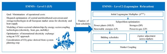 Within the framework of this study, a model of the European electricity market is used. The interaction with other sectors (heat, gas, mobility) is also taken into account. A two-level approach, the European multimodal market simulation (EMMS), also applied in [31], is carried out.