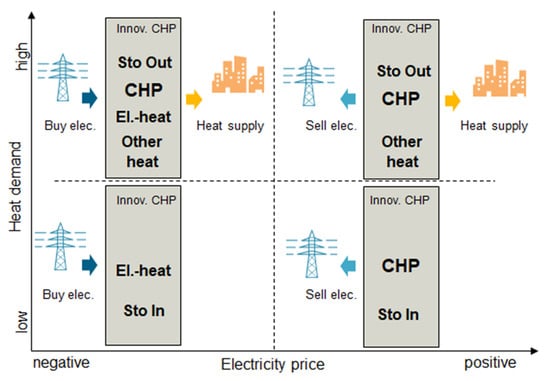 Overview of operation modes for innovative CHP solutions (figure adjusted from [41]).
