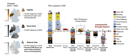- Kittel, M.; Goeke, L.; Kemfert, C.; Oei, P.-Y.; von Hirschhausen, C. Scenarios for Coal-Exit in Germany—A Model-Based Analysis and Implications in the European Context. Energies 2020, 13, 2041. [Google Scholar] [CrossRef]