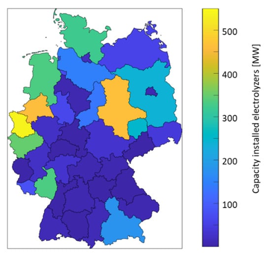 However, not only wind turbines face problems in their expansion; the transmission power grid also faces these problems [1,52]. Therefore, the optimizer used to calculate the optimal energy system setup could build additional electrolyzers to circumvent the bottlenecks in the power grid.