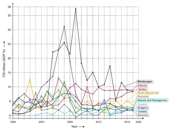 FDI inflows in ten Balkan countries (1998–2019) (Authors’ creation).