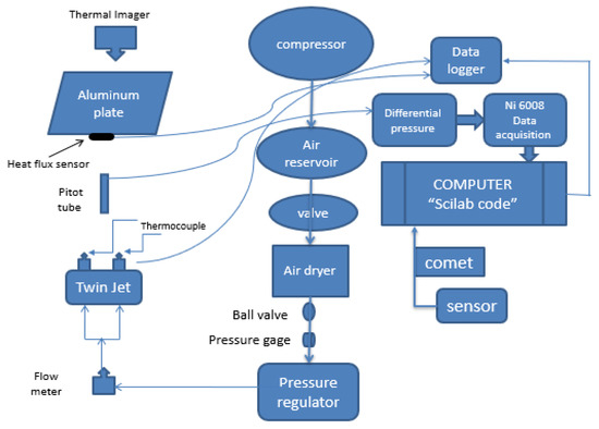 - The air jet thermocouple and micro sensor were linked to multi-channel data logger, which remained connected to the computer that allowed recording the heat transfer data (heat flux, surface temperature, and air jet temperature).