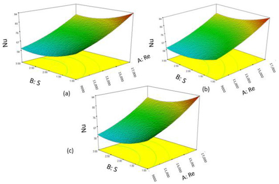 - RSM could conduct model optimization, which could be achieved by employing the DOE software to set response (Nusselt number) as maximum.