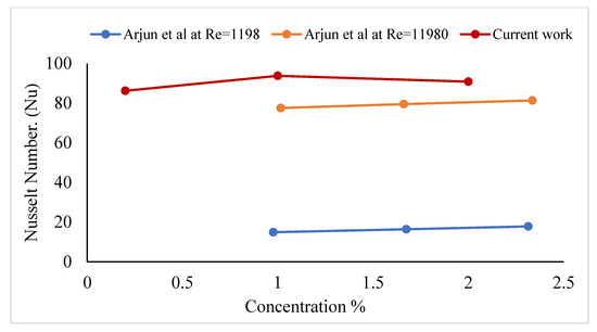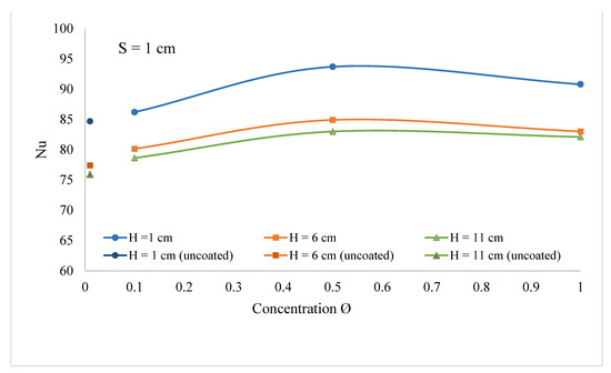 Interaction of Nusselt number values with different concentrations of Nanofluid.