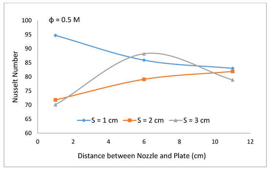 where Tj = jet temperature, Ts = surface temperature, q: denotes the amount of heat transferred (heat flux, W/m2) Equation (5). The Nusselt number equation can be employed to calculate the ratio of convective to conductive heat transfer: