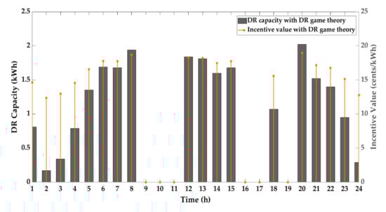 Figure 8 depicts the hourly DR capacity and incentive values derived from Method 2. Here, the average incentive value for one day is calculated as 16.8 ¢/kWh. Certainly, the higher the capacity, the higher the incentive value.