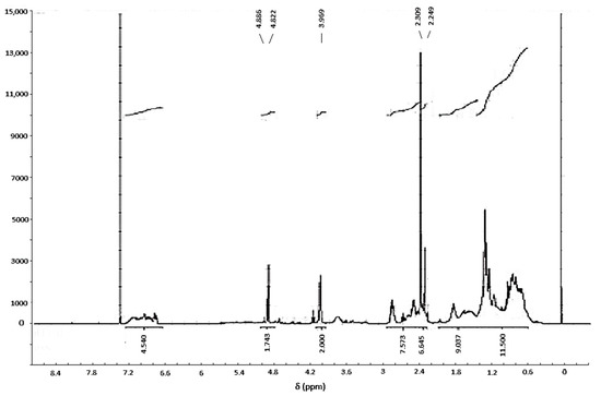 The 1H-NMR spectrum of the post-reaction sample of DEM2 in CDCl3 was recorded (Figure 7) using an Avance III 600 MHz apparatus from Bruker.