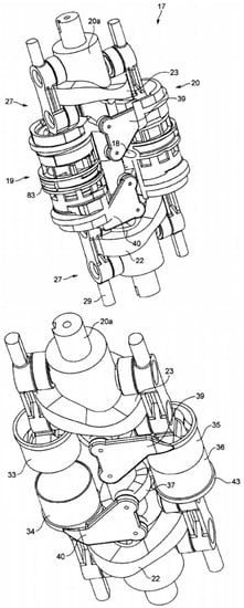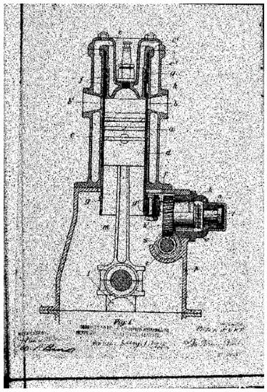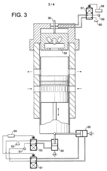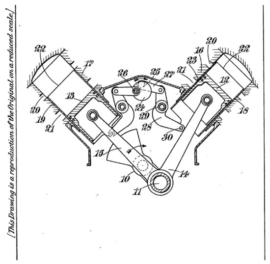 This was followed by Kipfer [12] (Figure 8) who simplified the concept and produced a design with an elliptical (Burt–McCollum-type) [6,7] drive mechanism for a smaller diesel engine. The asymmetric timing potential of a two-stroke in the design is clearly shown in the patent.