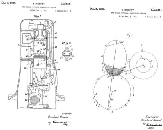 B. Bischof, 9 February1931, two-stroke internal combustion engine US 2022841. Reproduced with permission from US patent Office. Copyright Publisher, 1935.