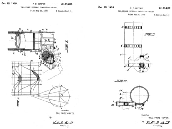 Kipfer 20 May 1936, two-stroke internal combustion engine US 2134286. Reproduced with permission from US patent Office. Copyright Publisher, 1938.