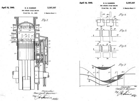 G.S Kammer 21 February 1939, two-stroke cycle US 2197107. Reproduced with permission from US Patent Office. Copyright Publisher, 1940.