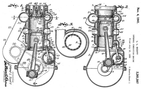 L.L. Scott GM, 13 July 1939: Internal combustion engine US 2261156. Reproduced with permission from US Patent Office. Copyright Publisher, 1941.