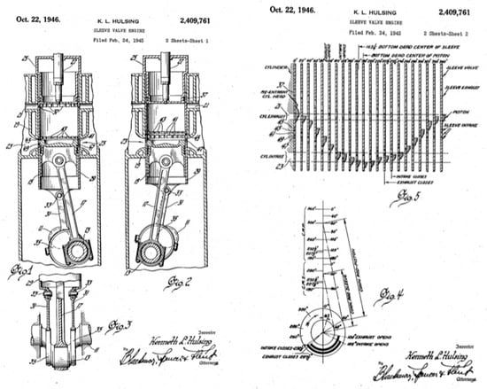 K Halsing GM 24 February 1945, sleeve valve engine US 2409761. Reproduced with permission from US Patent Office. Copyright Publisher, 1946.