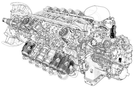 - Hiett, G.F.; Robson, J.V.B. A High-Power Two Cycle Sleeve Valve Engine for Aircraft. Aircraft. Eng. Burn. Publ. 1950, 22, 21–23. [Google Scholar] [CrossRef]