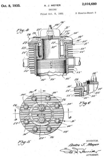 Junk Head Cooling A.J. Mayer. 8 October 1931 Continental Engine US 2016680. Reproduced with permission from US Patent Office Copyright Publisher, 1935.