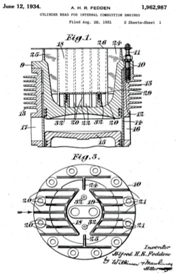 A.H.R Fedden, Bristol Aeroplane Company Cylinder head for internal combustion engine 28 August 1931, US 1962987. Reproduced with permission from US Patent Office. Copyright Publisher, 1934.