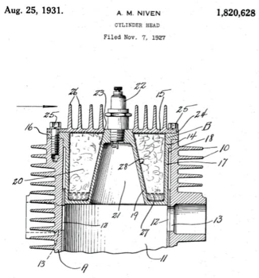 A.M. Niven Continental, cylinder head 25 August 1931, US 1820628. Reproduced with permission from US Patent Office Copyright Publisher, 1931.