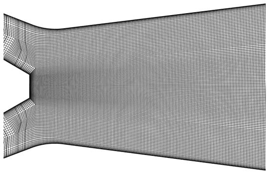 where y is the wall normal distance, the density, the dynamic viscosity, and the velocity component parallel to the wall. A slice through this mesh is presented in Figure 2, which illustrates the maximum effort spent to achieve orthogonality and equilateral edges of computational cells. Velocity boundary conditions were prescribed on the axial and tangential inlets and a constant static pressure on the outlet from the computational domain. Modeling of the turbulent flow was carried out with Stress-Blended Eddy Simulation (SBES) turbulence model [30]. SBES is a hybrid URANS-LES approach, based on an improved asymptotic shielding of RANS boundary layer against LES modification. Implementation of SBES within ANSYS Fluent 18.1 is employed, where the RANS part (mostly near-wall regions) is solved using SST k- model and the LES part (core of the flow containing a vortex rope) with wall-adapting local eddy-viscosity model (WALE LES). Its formulation of eddy viscosity is based on the following concept: