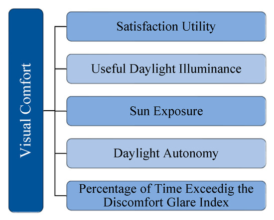 - Carlucci, S.; Causone, F.; De Rosa, F.; Pagliano, L. A review of indices for assessing visual comfort with a view to their use in optimization processes to support building integrated design. Renew. Sustain. Energy Rev. 2015, 47, 1016–1033. [Google Scholar] [CrossRef]