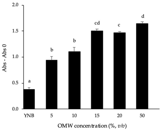 Y. lipolytica IMUFRJ 50682 were able to grow in OMW with 0.8 g·L