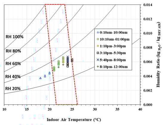 Psychrometric chart and time analysis on the day when the ERV system was off (24 February 2020).