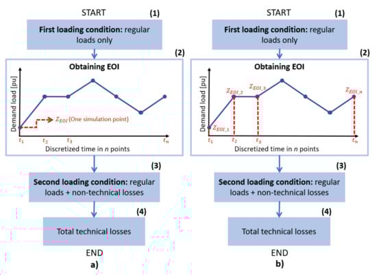 Therefore, considering the problem presented, of determining the total technical losses, EOI can be used according to the flowchart presented in Figure 2, considering two applications: