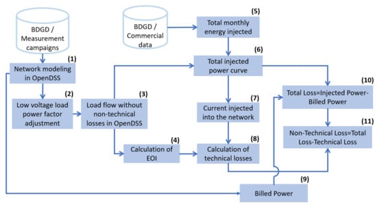 With regard specifically to non-technical losses, for their detection and identification, most of the published work involves the development of statistical techniques and computational intelligence in order to detect irregular energy consumption patterns [15,16,17]. From the identification of suspected locations of non-technical losses and the estimation of their magnitudes, the methodologies already covered include them in the global balance of energy losses.