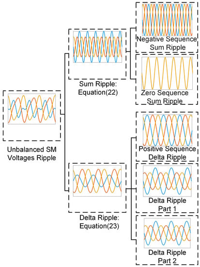 Illustration of the MMC’s submodule-capacitor voltage-ripple components under unbalanced grid conditions.
